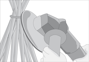 Con la ayuda de un trozo de tubo (pvc o fierro) doblar el trozo de fierro de 36 cm de largo para formar una argolla que tenga un diámetro aproximado de 11,5 cms.