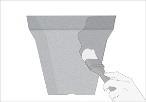Con la brocha echar la mezcla en la superficie lijada del macetero.