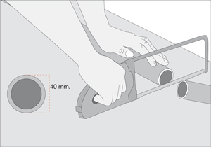 Cortar los tubos de PVC de 40 mms. de diámetro del largo requerido, usando para ello una sierrita o un cuchillo caliente.