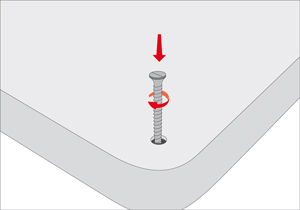 Atravesar un tornillo recto por cada perforación. Estos servirán para sujetar después la estructura a la base.