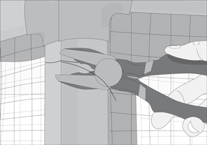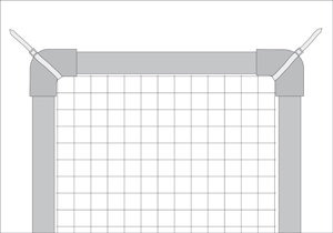 Empezar pasando la amarra por una esquina de la malla, de vuelta por el codo y cerrar. Si es necesario, ayudarse con un alicate para cerrarlo bien.