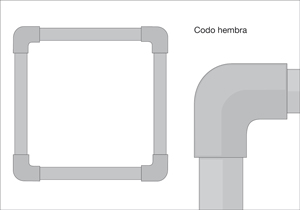 Para el cuadrado necesita 4 tubos y 4 codos hembra-hembra, uno para cada esquina.