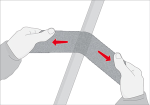 Atar la esquina superior e inferior de cada par de lados, a la altura del codo, envolviéndolos en forma de ocho.