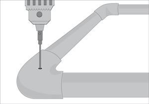 Con un taladro o un soldador de estaño, abrir unas perforaciones en las dos esquinas del tubo que irá apoyado en la base.