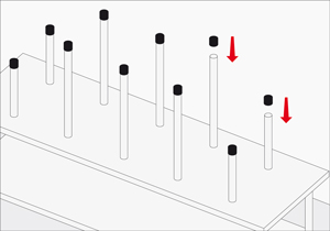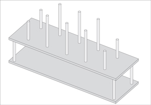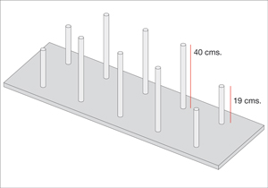 Encolar los 10 orificios y poner 6 tarugos de 40 cms en el centro y 2 tarugos de 19 cms en los costados.