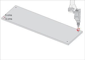 Con el taladro hacer las perforaciones en las marcas ya hechas.