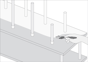 Unir el trozo A con el trozo B, haciendo que los tarugos coincidan con los orificios.
