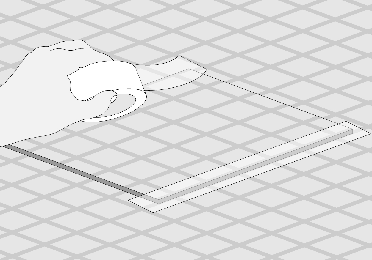 Colocar el parche en su posición y afirmarlo con cinta adhesiva por todos sus bordes.