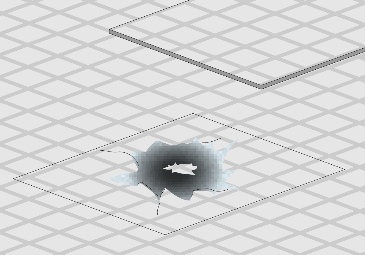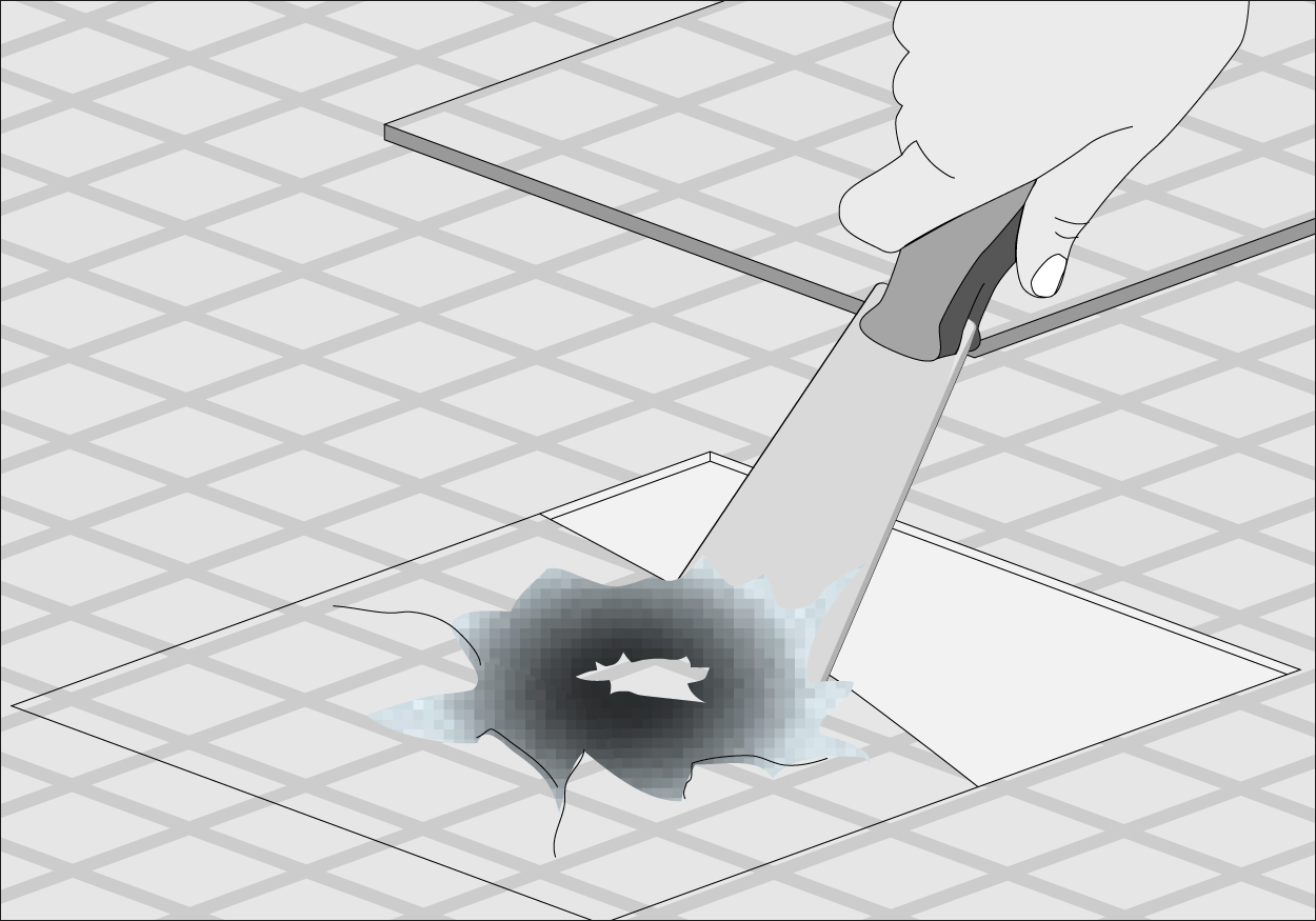Aspirar todos los pedazos sueltos y asegurarse de que el área a parchar esté totalmente limpia.