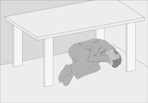 Si la situación lo amerita y hay necesidad de protegerse, meterse debajo de una mesa o de un escritorio resistente (que no sea de vidrio) colocándose en posición fetal, con la cabeza junto a las rodillas, cubriéndola con ambas manos.