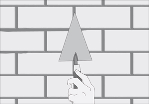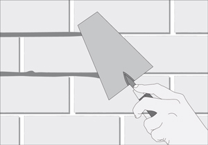 Con una plana botadora deslizar el cordón de mezcla hacia el muro y presionarlo dentro de la cantería.
