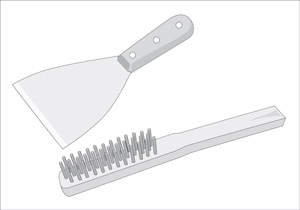 Con una espátula y escobilla de cerdas se raspa y saca todo el concreto suelto que exista producto de la filtración.