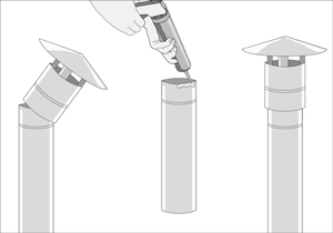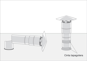 Si se vuela el gorro del ducto, se vuelve a fijar con silicona o tapagotera, materiales adhesivos y flexibles que permitirán acomodar el gorro al ducto metálico.