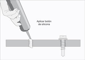 Si la gotera se origina en el sello de un tornillo la solución es desatornillar y aplicar un botón de silicona neutra en el orificio.
