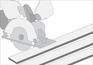 Con sierra circular se cortan las tablas a la medida del alto de la reja.