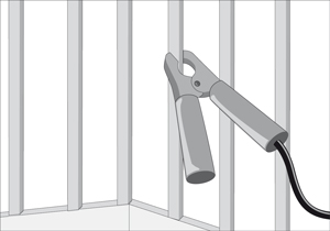 Asegúrese que la pinza toque directamente la superficie metálica.