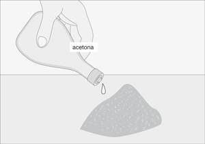 Agregar algunas gotas de acetona transparente a ese polvito y preparar una pasta.