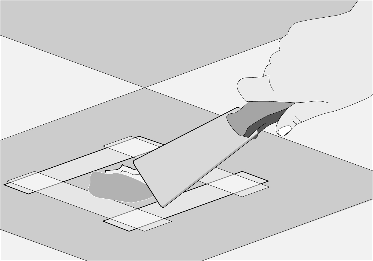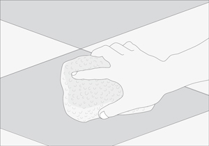 Limpiar el área dañada con agua tibia y, de ser necesario, escobillar con virutilla fina de acero.