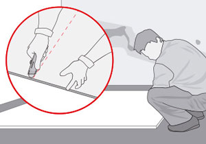 - Con el trazado y las medidas del muro hay que dimensionar las planchas, cortándolas con cuchillo cartonero. Los cortes se deben hacer por el lado de la plancha de yeso cartón.