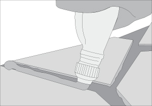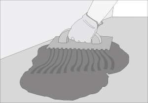 Aplicar una cama de 8 mm aproximadamente de adhesivo, pero esto puede variar según las condiciones del piso. Poner la primera palmeta y golpear suavemente con un mazo de goma para asentar