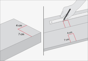 Y en las vigas de 2 mt, los calados irán en sentidos opuestos en cada extremo, es decir uno mirando hacia arriba y en el otro para abajo.Cortar los calados con la sierra caladora.