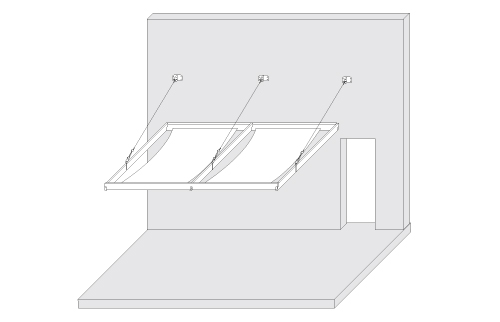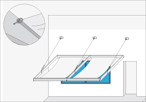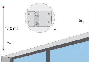 Son 3 pares de uniones de viga, que se juntan con pernos y tuercas. Van fijas a la pared, y para ubicarlas hay que medir 110 cm desde el borde de la ventana hacia arriba del muro, y ponerlas alineadas con los extremos y el eje de la viga. Estas uniones se presentan en su posición, se marcan los agujeros, se perforan y se fijan con adhesivo de anclaje, pernos, golillas y tuercas.