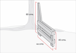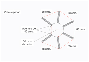 Marcar con tiza en el suelo un círculo de 55 cm de diámetro. Poner los 6 pares de patas con una separación entre cada uno de 19 cm y dejar una apertura de 40 cms. en la parte de atrás del asiento, este espacio sirve para rodear el tronco del árbol.