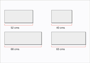 Cortar 2 trozos de 68 cm y 2 de 52 cm de las tablas de 8x2” para formar los extremos del asiento. Cortar 3 trozos de 63 cm6 trozos de 40 cm de las tablas de 2x4” para las patas delanteras.