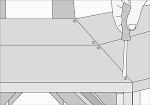 Atornillar las tablas del asiento a las patas. Cada asiento está formado por 2 tablas, 1 larga y otra más corta.