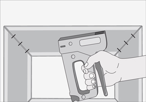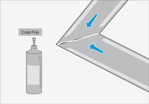 Unir los 4 trozos cortados con ángulo en 45º y fijarlos con cola fría, en su cantos, y engrapadora.