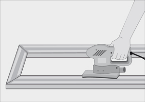 Con la lijadora orbital y la lija de 180 pulir el marco, pasarla por los cantos y la superficie de la madera.