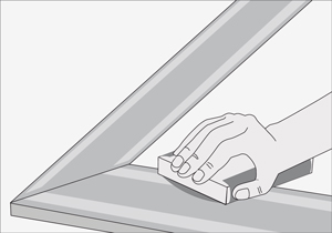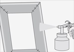 Hacer una mezcla de masilla para pistola y diluyente Duco, en proporciones 3:1. Pulverizar sobre las 2 caras del marco. Dejar secar y pasar una lija a mano de 240, para eliminar granos y relieves que pueden quedar después de esta mano de aparejo.