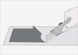 El paspartú es una cartulina o cartón, blanco para que resalte con el marco negro. Se corta de 50x70 cm, es decir 10 cm más grande que la foto. Hay que hacer un corte interior en el paspartú, éste se hace dejando centrada la foto, con un borde parejo por todo el contorno, en este caso de 6 cm. Cortar con cuhillo cartonero, y una regla para que quede muy exacto.