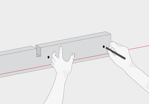 Presentar la viga, nivelar con la línea y hacer el resto de las perforaciones.