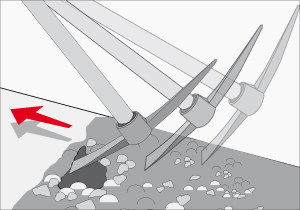 El radier será de 10 cms de altura. Para eso, hay que rebajar el suelo 20 cms. Hacer esto ayudándose de una picota, y partiendo por la parte en que hay que sacar más tierra. Es decir, aquella donde están los 43 cms de altura.