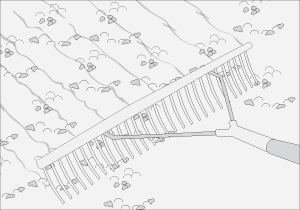 Esparcir la gravilla ayudándose de un rastrillo. Mojar luego, para que se asiente el suelo y después se pueda apisonar.