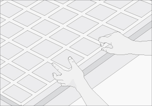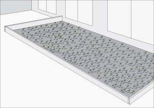 Cortarla a la medida exacta. Dejarla sobre la gravilla, y presionar suavemente.