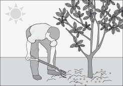 - En invierno: hacer 4 a 10 hoyitos (según el tamaño de la copa) de 20 a 40 cm de profundidad en la proyección del contorno de la