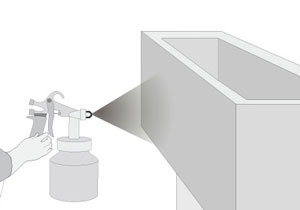 Con pistola y compresor aplicar el Primer diluido en agua. Dejar secar y pulir con lija nº400. Diluir el esmalte al agua y aplicarlo con pistola en por lo menos 2 capas.
