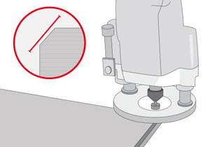 Con una fresadora rebajar los cantos, para que eliminar los vértices y ángulos peligrosos. Usar mascarilla y gafas, ya que salen astillas.