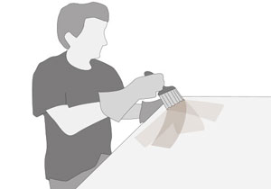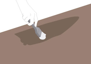 Sacar el exceso con la espátula y dejar secar por 2 horas. Pulir con lija fina nº 150 y 180.