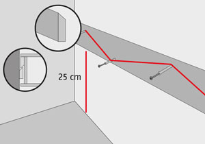 Un trozo se fija en la parte trasera del mueble, con cola fría y tornillos, y la otra en el muro.