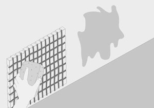 Sacar el papel que viene en el reverso de las mallas de mosaico. Aplicar adhesivo Montack y pegarlo en el muro. Si el muro tiene forma irregular o tiene que rodear algún objeto como grifería, la malla de mosaico se puede cortar con tijera para dar la forma necesaria.