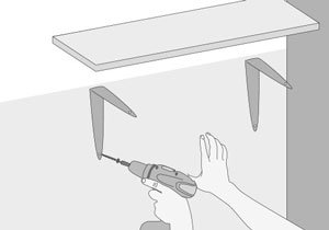 Con ayuda de otra persona colgar el mueble en el muro, calzando las tablas cortadas en 45º.