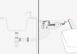 En el reverso de la base del lavaplatos, donde hará contacto con la cubierta, aplicar silicona y ponerlo en el calado del mueble.