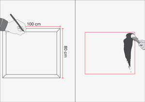 Hacer con molduras un marco de 80cm x 1 mt. Apoyarlo en la pared y marcar el contorno interior, esta será la zona de dibujo para el niño. Aplicar pintura de pizarrón en la zona delimitada. Dejar secar 24 hrs. Para borrar la tiza luego de dibujar, solo pasar un paño húmedo