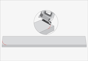 Para hacer el librero, que dejará los libros con la tapa a la vista y usará la pared como soporte, necesitaremos 5 tablas de pino cepillado de 1 mt de 4x1” y 3 junquillos de pino finger de 1 mt. Tomar dos tablas de pino y redondear las puntas con una sierra caladora para usarlas como soportes laterales.