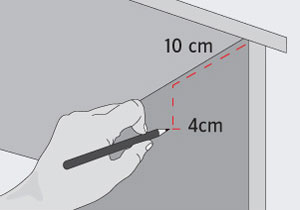 Para los tambores, marcar con rojo en ambos lados de la trasera, a 4 cm hacia dentro y a 5 y 15 desde el borde superior.
