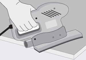 Usando la lijadora orbital y una lija fina pulir todos los cantos y superficies de las piezas que componen el escritorio.