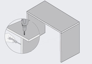 La fijación del escritorio es con pernos parafuso, que permiten armar y desarmar las estructuras de madera con mucha facilidad. Se compone del perno (hilo) y de un tambor que sirve de enganche.